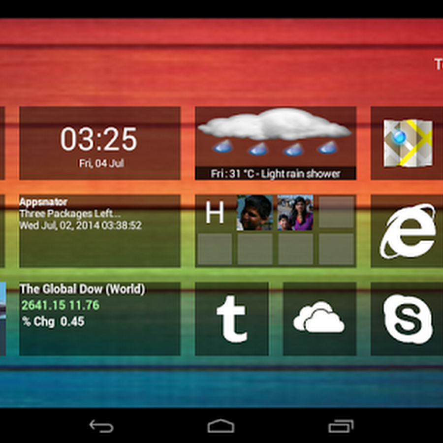 ✔ Live tiles : Gmail, twitter, facebook, calendar, news, weather, stock market etc